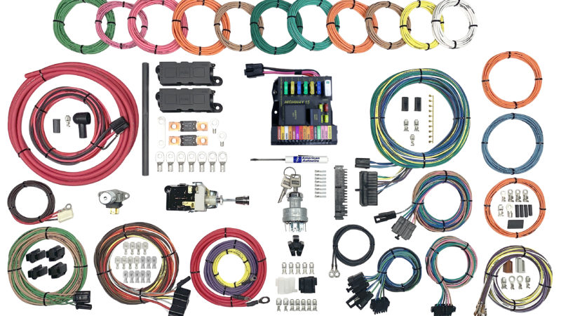 American Autowire produces a huge selection of wiring harnesses, accessories, kits, and components that any true rodder or restorer can appreciate. We offer over 9,000 original restoration wiring harness, switches, battery cables, and spark plug wire set combinations in our Factory Fit product line, complete modified restoration kits in our Classic Update Series, and provide integrated fuse panel and modular fuse panel street rod wiring through our Power Plus, Builder and Highway series.