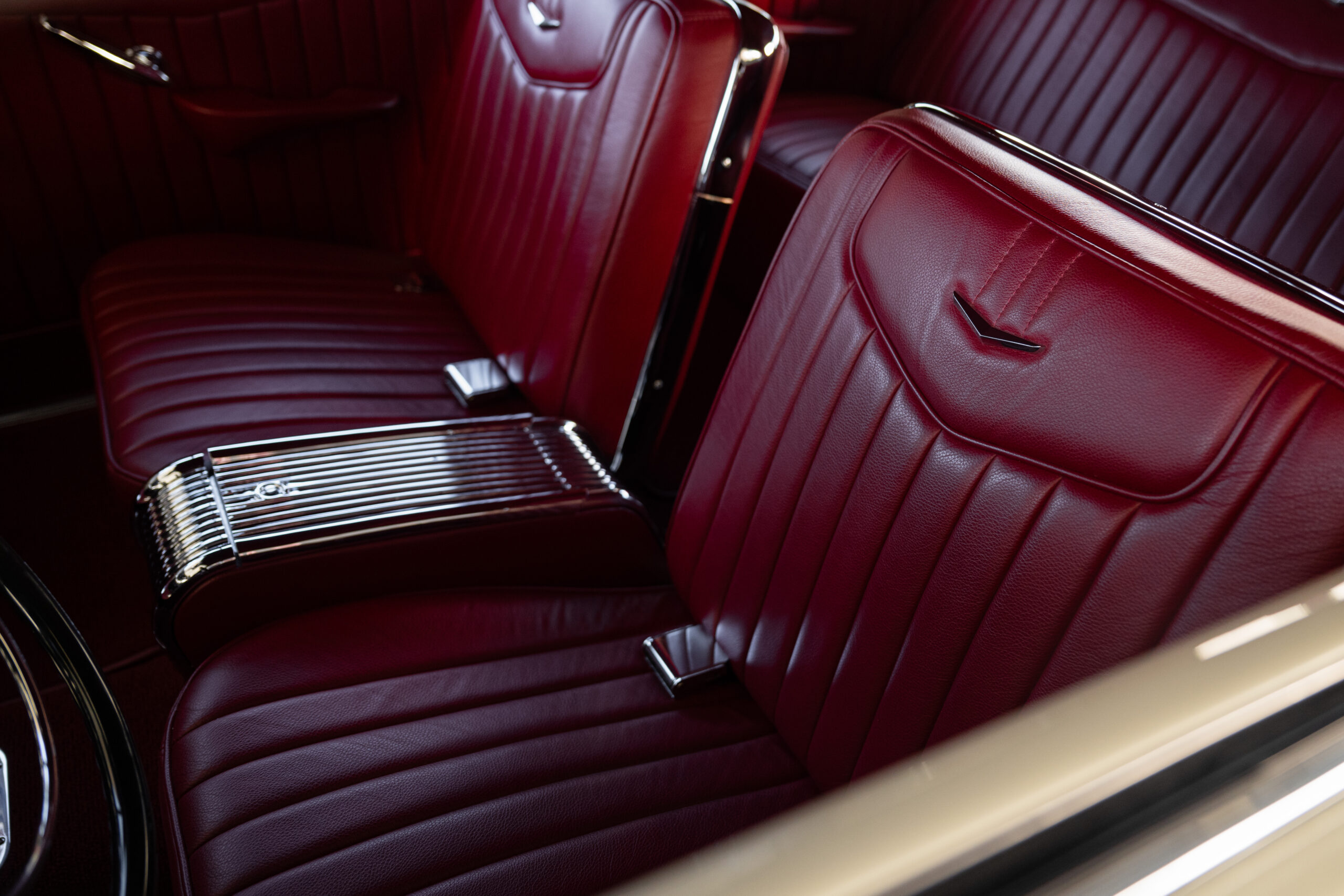 Now it was time to give the interior a new look. To recapture the glory of the ’51, Manley selected Moore & Giles Tribeca Chianti. The deep red creates a vision of total luxury, blending seamlessly with the dashboard, gauges, and even the red Mercury emblem on the steering wheel. All in all, a perfect fusion.