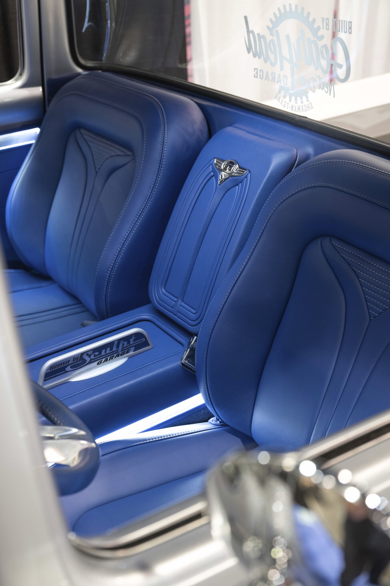 Gearhead Next Door's F-1Million is a stunningly restored 1956 Ford F-100. Powered by a supercharged 7.3 Ford Godzilla engine and 1000 horsepower Whipple Supercharges, it rides on a No Limit Engineering chassis fitted with Schott wheels controlled by Baer brakes. Sculpt Garage then worked their magic on the interior, completing the look with Moore & Giles' striking Carlyle Ultramarine leather.