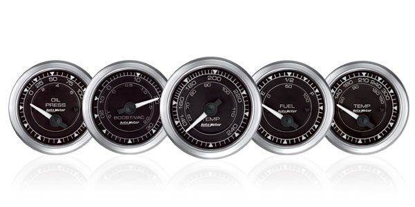 8100 GAUGE KIT, 5 PC., 3 3/8" ELECTRIC SPEEDOMETER, 2-1/16" SHORT SWEEP ELECTRICFUEL 240ΩE to 33ΩF, PRESS 0-100 PSI, TEMP 100-250°F, VOLT 8-18V, CHRONO8103-