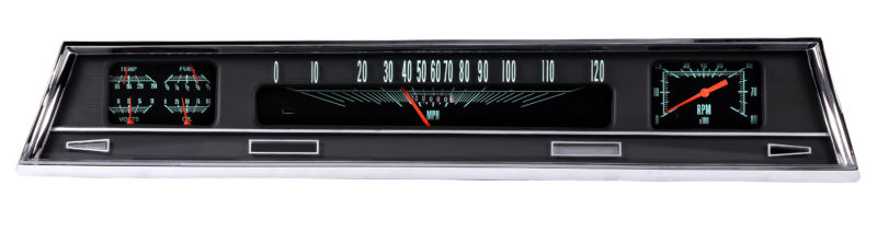 The gauge cluster, which includes an electronic speedometer, oil pressure, coolant temp, fuel level, voltage and a tach, are all housed in a new bolt-in housing with the distinct look and feel of a classic Chevelle. Sensors are supplied and turn signals and a high-beam indicator are also built-in. For more information, go to www.classicinstruments.com.