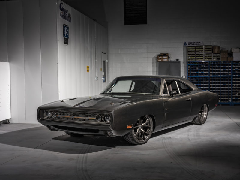 “Evolution,” the carbon fiber bodied 1970 Dodge Charger, began with SpeedKore Vice President Dave Salvaggio personally creating the vehicle design in a 3D modeling software. With the model finalized, billet aluminum molds were produced for each body panel, resulting in carbon fiber body panels and parts with a flawless weave that are lighter than aluminum and stronger than steel. Replacing the factory metal body panels with carbon fiber alternatives ultimately yielded a street-legal, 3,200-pound vehicle that still retains its original 1970 VIN number.
