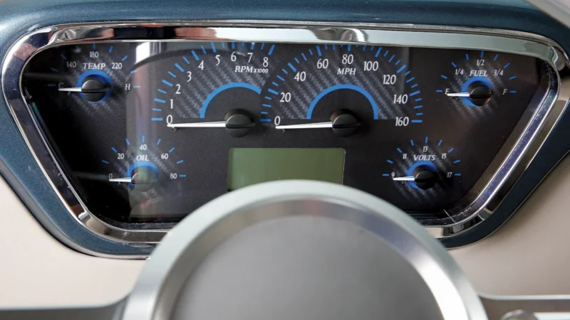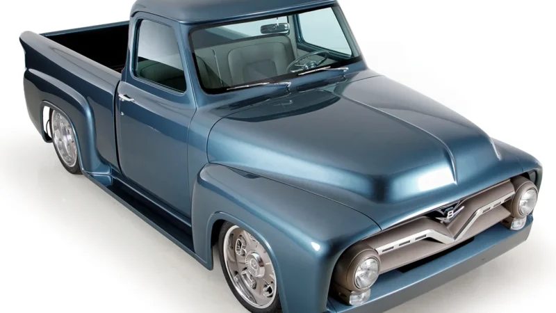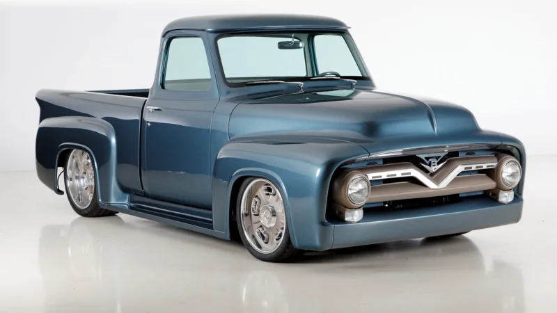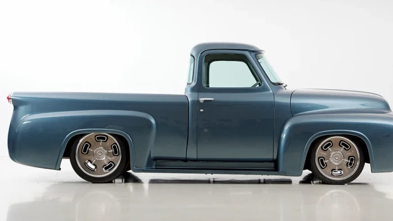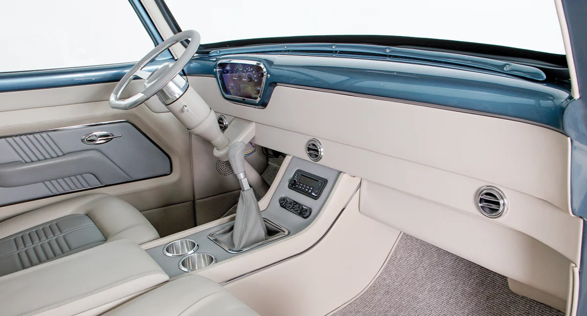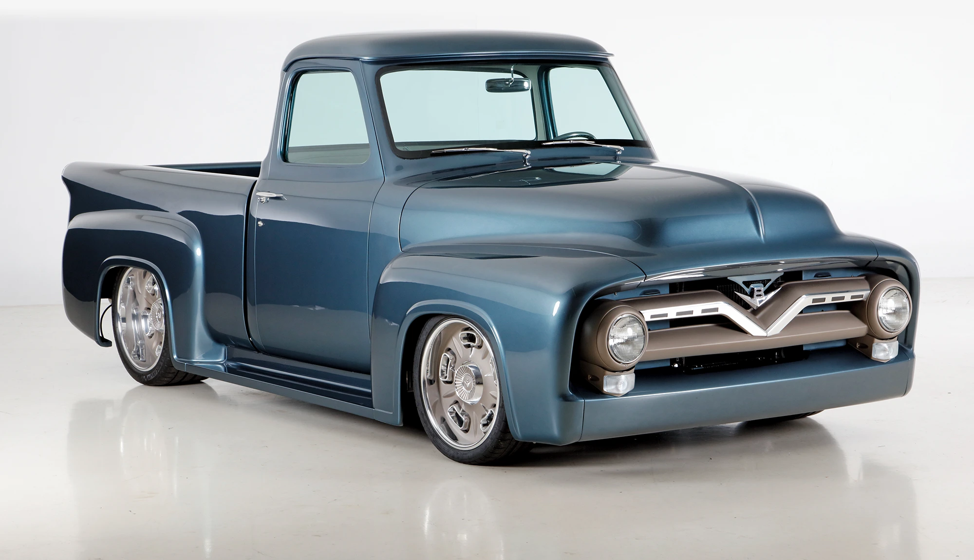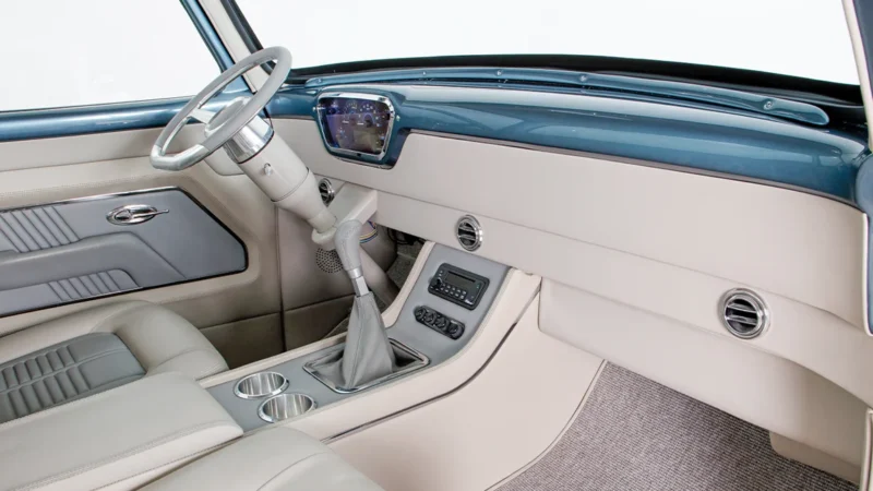 I decided to bring the truck back to California to finish. I owned a body shop when I was younger so the journey began. I scrapped the hood, front fenders, core support, firewall, cab floor, doors, added new front cab corners and another cowl. The bed was made of quarter panels from a 1955 Ford panel truck with 1954 Ford station wagon taillights. The bed floor is made of Black Walnut with a maple inlay finished with automotive clear.