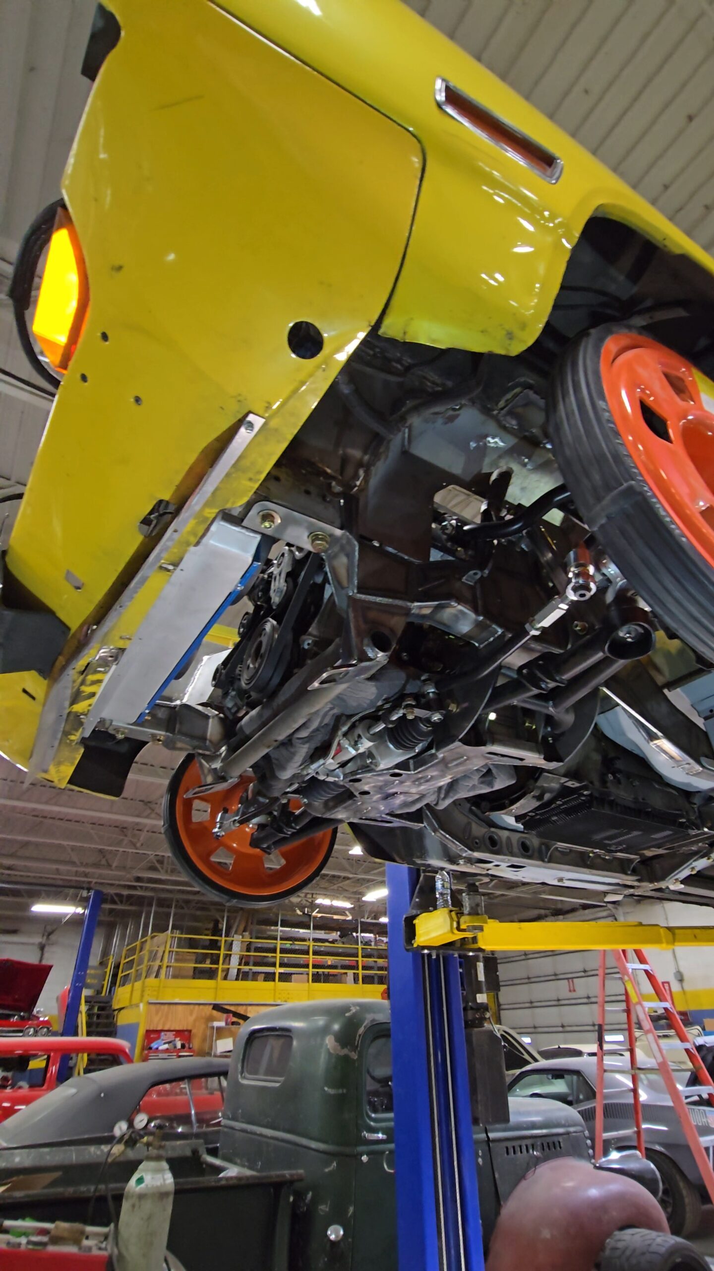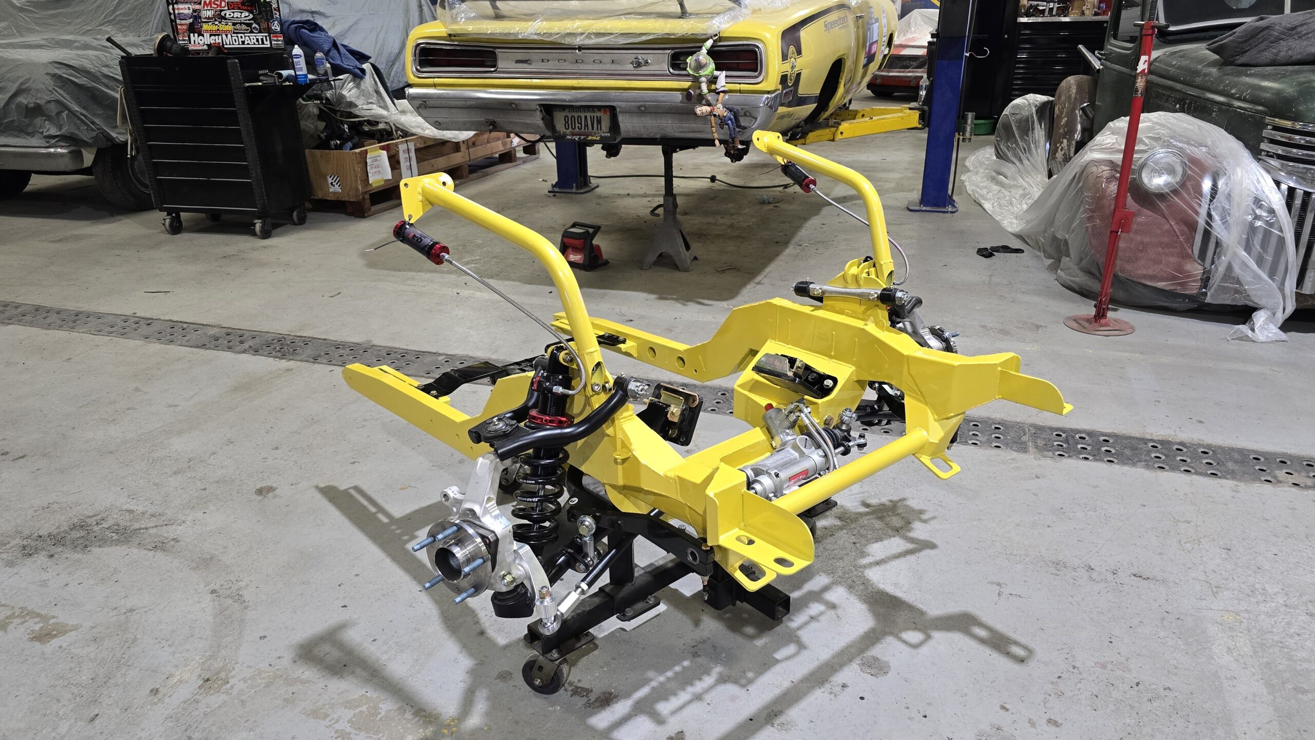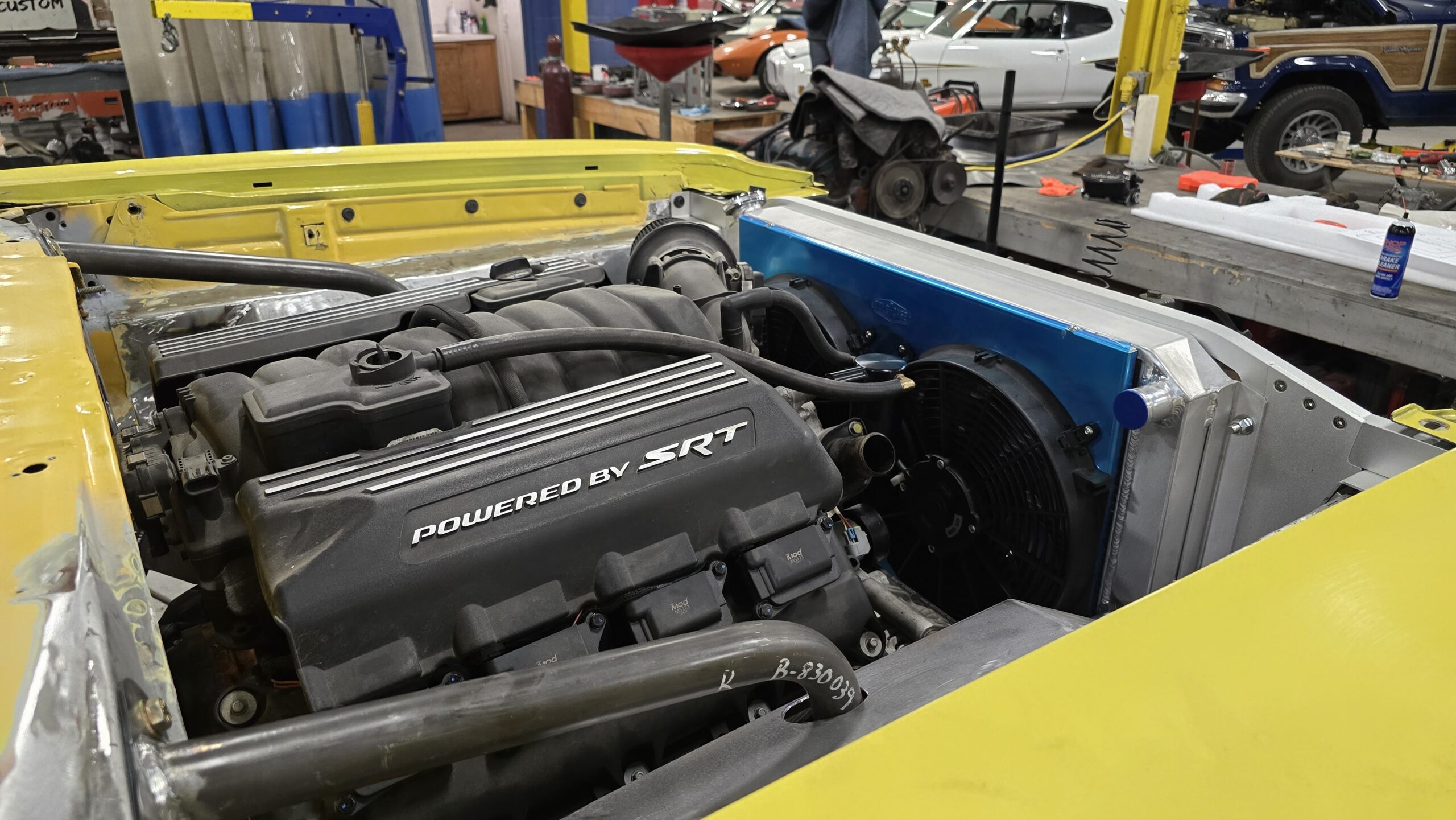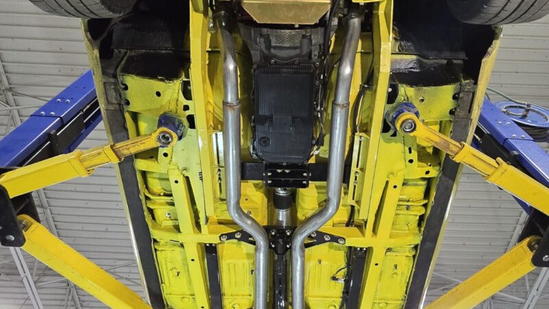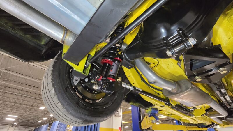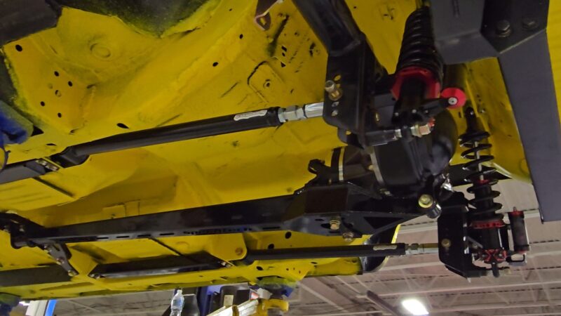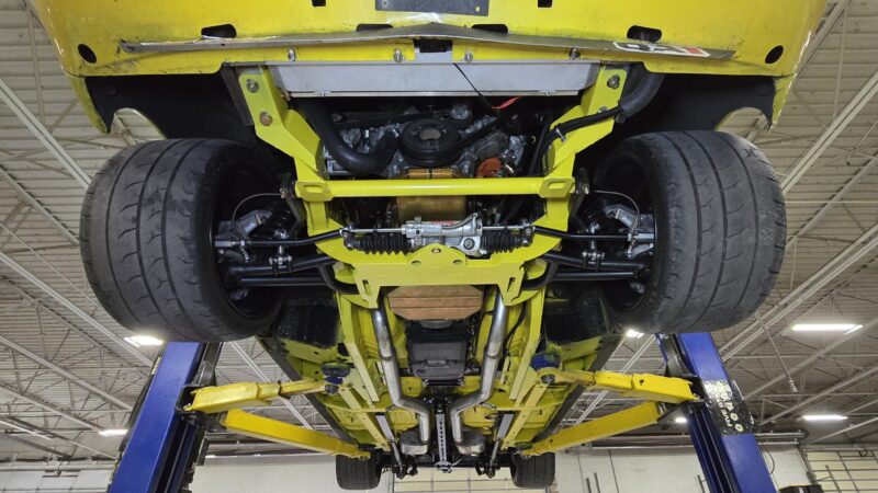 In 2025, the Super Bee entered its most extensive rebuild yet. Due to rust, the chassis was upgraded with a Speedtech Performance Extreme front subframe and rear torque arm, paired with QA1 MOD Series shocks coinciding with the public announcement of the Speedtech and QA1 partnership. Braking was upgraded to C7 Corvette based Wilwood six-piston brakes, and the rear end was replaced with a Dutchman 9-inch axle with Eaton Truetrac, connected by a 4-inch aluminum driveshaft from Action Machine. The car now rides on custom Forgeline wheels with 315/30/18 Hoosier Track Attack tires. custom Pypes exhaust, and features a one-off billet aluminum core support and radiator from Cold Case. Inside, modern seating and a Holley digital gauge package complete the interior.