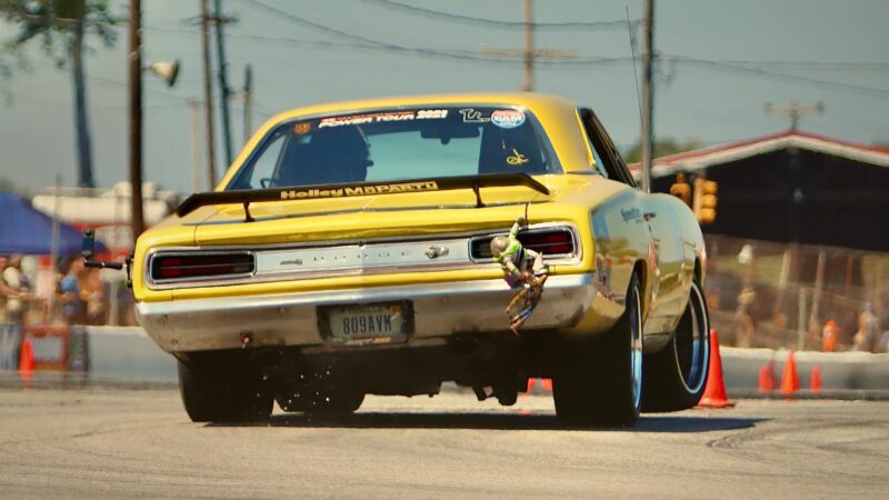 The car first evolved into a street cruiser before briefly stepping into drag racing duty at Osceola Dragway. During this phase, it received its Pearl Yellow paint, and rolled on Cragar wheels with Hoosier drag slicks, and was powered by a tired 440 backed by a 727 transmission, upgraded with Holley EFI.