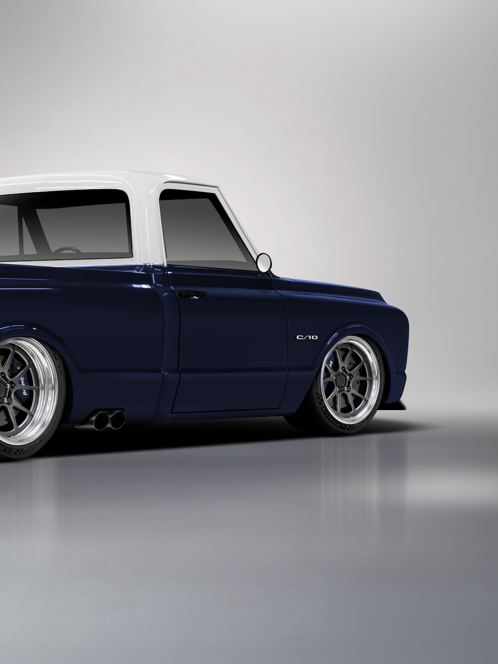 Blending the raw soul of 1970s NASCAR with the geometry and finesse of a modern GT car, the C10 SS/R reimagines what a classic pickup can be. Its stance is unmistakable; low, raked, and unapologetically athletic. Every surface and contour was sketched with intent. Every line speaks a design language that’s both grounded in heritage and hungry for the future.